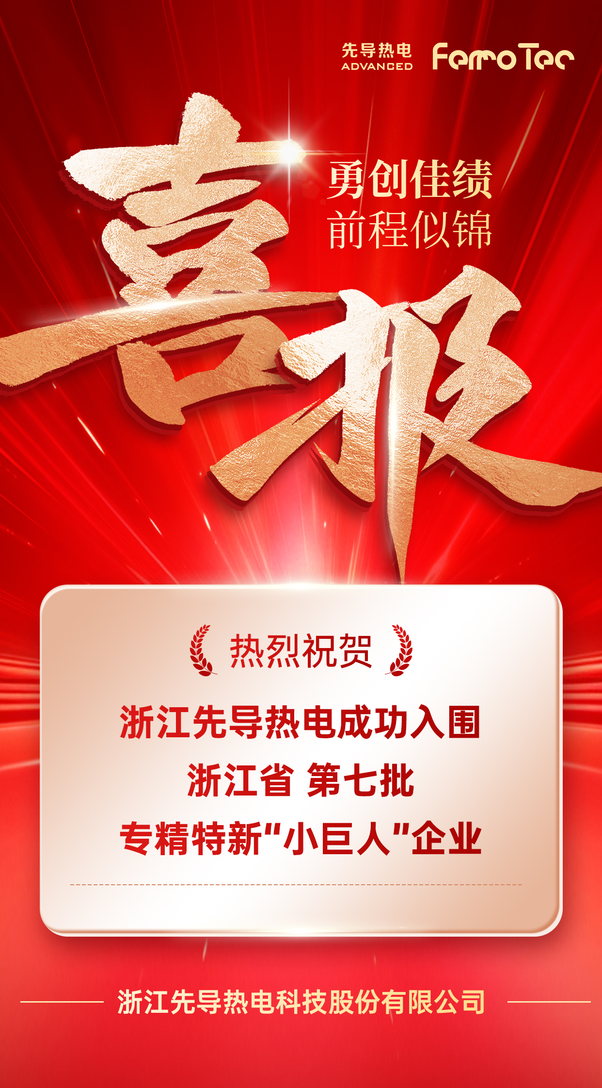 近日,国家工信部正式公布第七批国家级专精特新“小巨人”企业名单,浙江先导热电科技股份有限公司凭借在半导体制冷领域的核心技术优势成功入围!特此发布喜报!