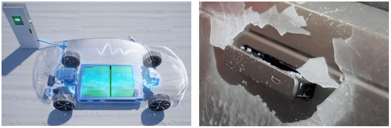 ▲ 电池低温预热 ▲ 智能门把手防冻