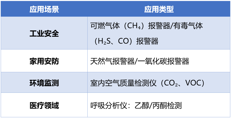 家用安防:用于天然气泄漏和一氧化碳(CO)中毒预警设备,守护家庭安全;