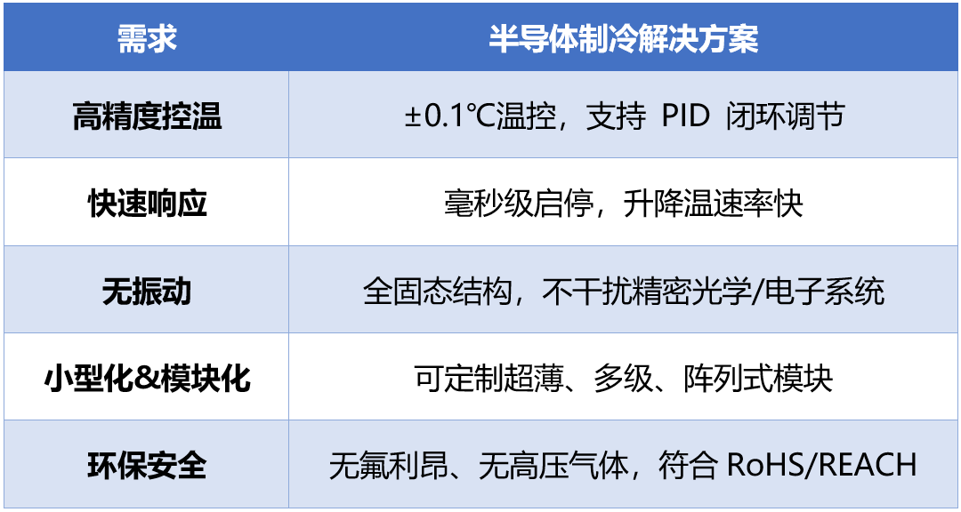 传统压缩机制冷依赖制冷剂循环,响应迟缓、热惯性大,很难实现快速精准的温度切换。并且压缩机体积庞大,难以适配小型化或便携式设备。运行时产生的振动与噪声还会干扰光学检测系统,影响结果准确性。正因如此,IVD行业迫切需要一种高精度、小体积、静音又可靠的温控方案——而半导体制冷(TEC)方案正好满足了这些需求。